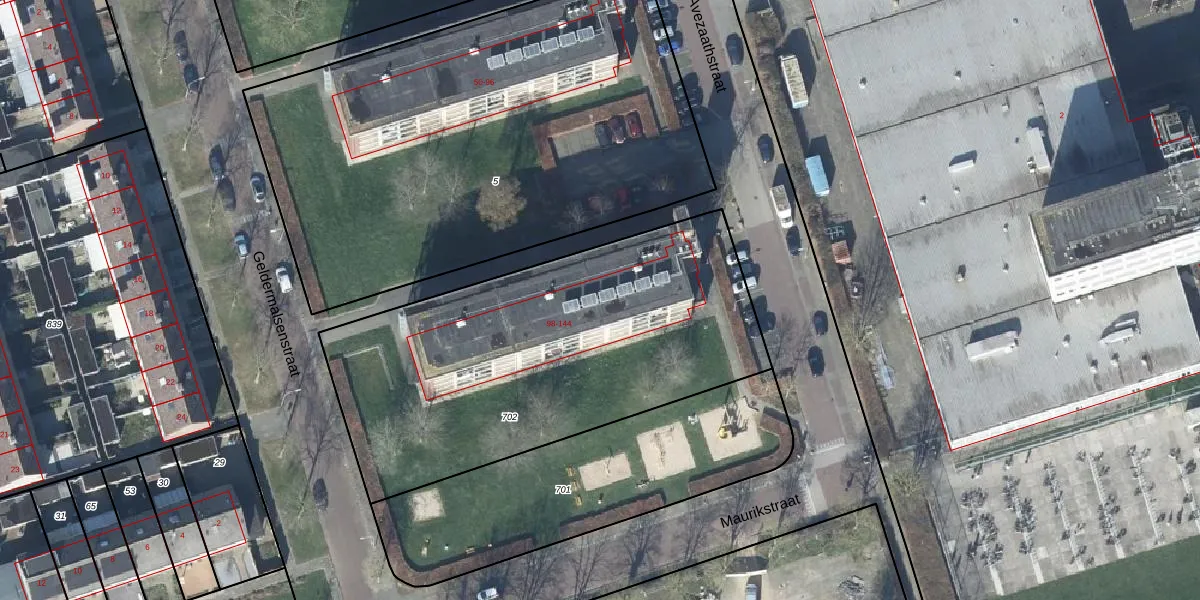 Avezaathstraat 100 is gelegen op kadastraal perceel TIE00M702. Deze kadastrale aanduiding is uniek en wordt gebruikt door het Kadaster om eigendomsrechten en andere zakelijke rechten vast te leggen. Het perceel maakt onderdeel uit van de kadastrale gemeente Tiel.