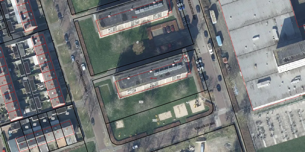 Het adres is gelegen op perceel 702 in de sectie M en de kadastrale gemeente Tiel. De kadastrale aanduiding is aldus TIE00-M-702. De oppervlakte van het perceel is 2040 m². Dat is groter dan gemiddeld in Tiel, waar de gemiddelde perceeloppervlakte op 1550,27 m² ligt. Het kleinste perceel in de kadastrale gemeente is 0 m² groot. De grootste perceeloppervlakte is 26,3 ha. Er zijn 36 adressen aanwezig op het perceel. In de Basisregistratie Kadaster (BRK) werden de grenzen van het perceel geregistreerd op 17-01-2003.