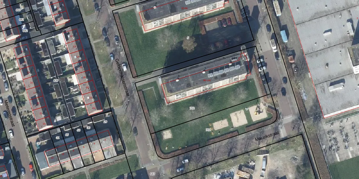 Het adres is gelegen op perceel 702 in de sectie M en de kadastrale gemeente Tiel. De kadastrale aanduiding is aldus TIE00-M-702. De oppervlakte van het perceel is 2040 m². Dat is groter dan gemiddeld in Tiel, waar de gemiddelde perceeloppervlakte op 1550,27 m² ligt. Het kleinste perceel in de kadastrale gemeente is 0 m² groot. De grootste perceeloppervlakte is 26,3 ha. Op het perceel liggen in totaal 36 adressen. De huidige grenzen van het perceel zijn digitaal in de Basisregistratie Kadaster (BRK) geregistreerd op 17-01-2003.