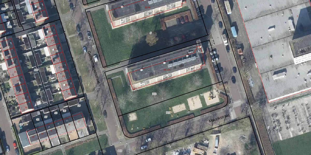 Het adres is gelegen op perceel 702 in de sectie M en de kadastrale gemeente Tiel. De kadastrale aanduiding is aldus TIE00-M-702. De oppervlakte van het perceel is 2040 m². Dat is groter dan gemiddeld in Tiel, waar de gemiddelde perceeloppervlakte op 1550,27 m² ligt. Het kleinste perceel in de kadastrale gemeente is 0 m² groot. De grootste perceeloppervlakte is 26,3 ha. Op het perceel liggen in totaal 36 adressen. In de Basisregistratie Kadaster (BRK) werden de grenzen van het perceel geregistreerd op 17-01-2003.