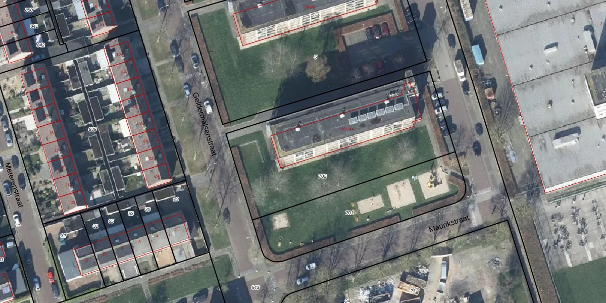 Het adres is gelegen op perceel 702 in de sectie M en de kadastrale gemeente Tiel. De kadastrale aanduiding is aldus TIE00-M-702. De oppervlakte van het perceel is 2040 m². Dat is groter dan gemiddeld in Tiel, waar de gemiddelde perceeloppervlakte op 1550,27 m² ligt. Het kleinste perceel in de kadastrale gemeente is 0 m² groot. De grootste perceeloppervlakte is 26,3 ha. Op het perceel liggen in totaal 36 adressen. In de Basisregistratie Kadaster (BRK) werden de grenzen van het perceel geregistreerd op 17-01-2003.