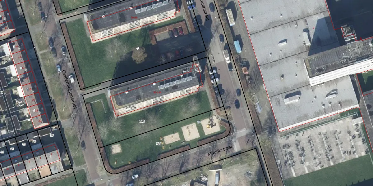 Het adres is gelegen op perceel 702 in de sectie M en de kadastrale gemeente Tiel. De kadastrale aanduiding is aldus TIE00-M-702. De oppervlakte van het perceel is 2040 m². Dat is groter dan gemiddeld in Tiel, waar de gemiddelde perceeloppervlakte op 1550,27 m² ligt. Het kleinste perceel in de kadastrale gemeente is 0 m² groot. De grootste perceeloppervlakte is 26,3 ha. Er zijn 36 adressen aanwezig op het perceel. In de Basisregistratie Kadaster (BRK) werden de grenzen van het perceel geregistreerd op 17-01-2003.