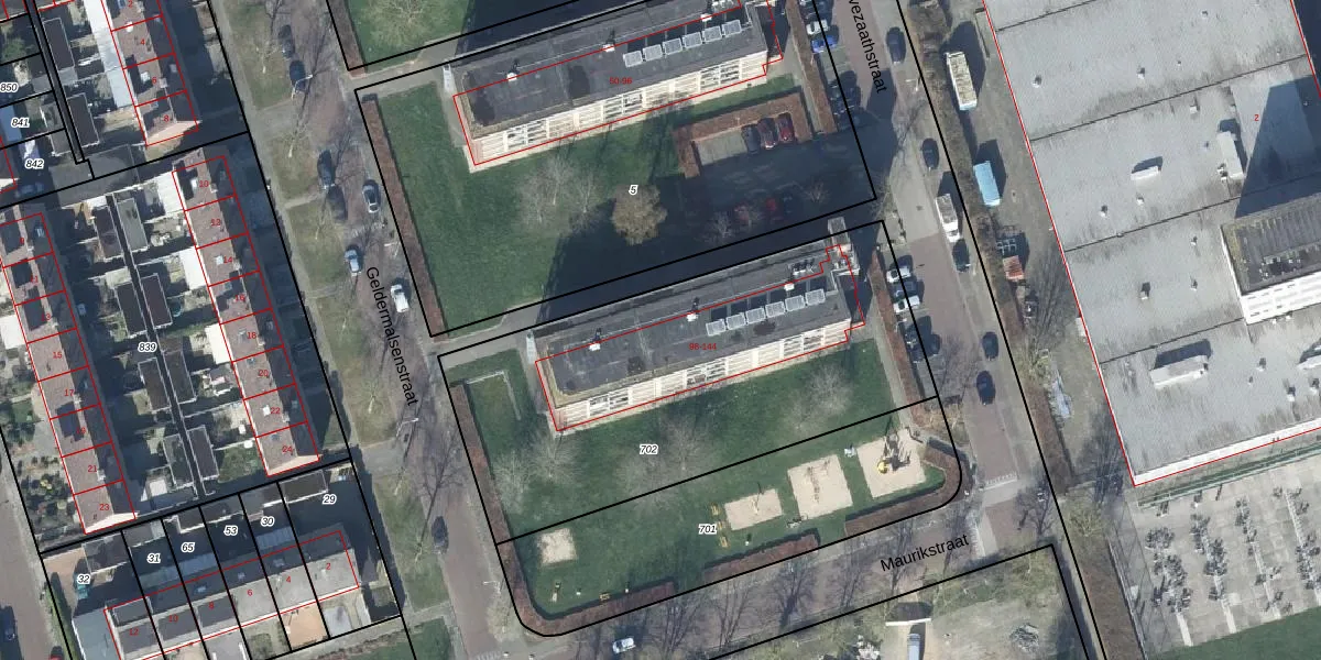 Het adres is gelegen op perceel 702 in de sectie M en de kadastrale gemeente Tiel. De kadastrale aanduiding is aldus TIE00-M-702. De oppervlakte van het perceel is 2040 m². Dat is groter dan gemiddeld in Tiel, waar de gemiddelde perceeloppervlakte op 1550,27 m² ligt. De grootste perceeloppervlakte in de kadastrale gemeente is 26,3 ha. De kleinste oppervlakte bedraagt 0 m². Er zijn 36 adressen aanwezig op het perceel. De huidige grenzen van het perceel zijn digitaal in de Basisregistratie Kadaster (BRK) geregistreerd op 17-01-2003.