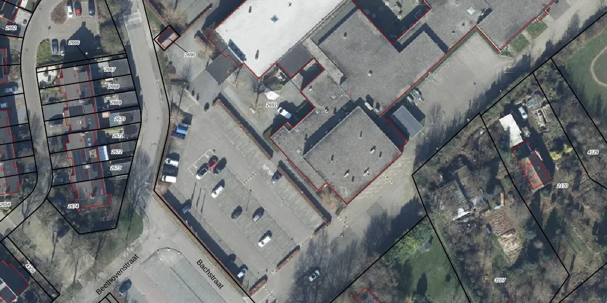 Het perceel waarop Bachstraat 1 staat heeft een oppervlakte van 1,7 ha. Dit is een zeer groot perceel. De perceeloppervlakte wordt geregistreerd door het Kadaster. Gedetailleerde informatie over de maten van dit perceel kunt u vinden in het rapport Kadastrale kaart met maatvoering van Bachstraat 1.