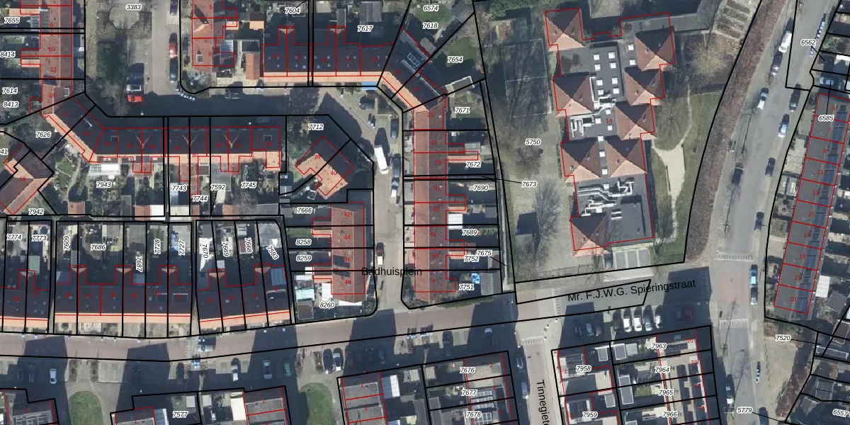 Badhuisplein 33 is gelegen op kadastraal perceel TIE00D7690. Deze kadastrale aanduiding is uniek en wordt gebruikt door het Kadaster om eigendomsrechten en andere zakelijke rechten vast te leggen. Het perceel maakt onderdeel uit van de kadastrale gemeente Tiel.
