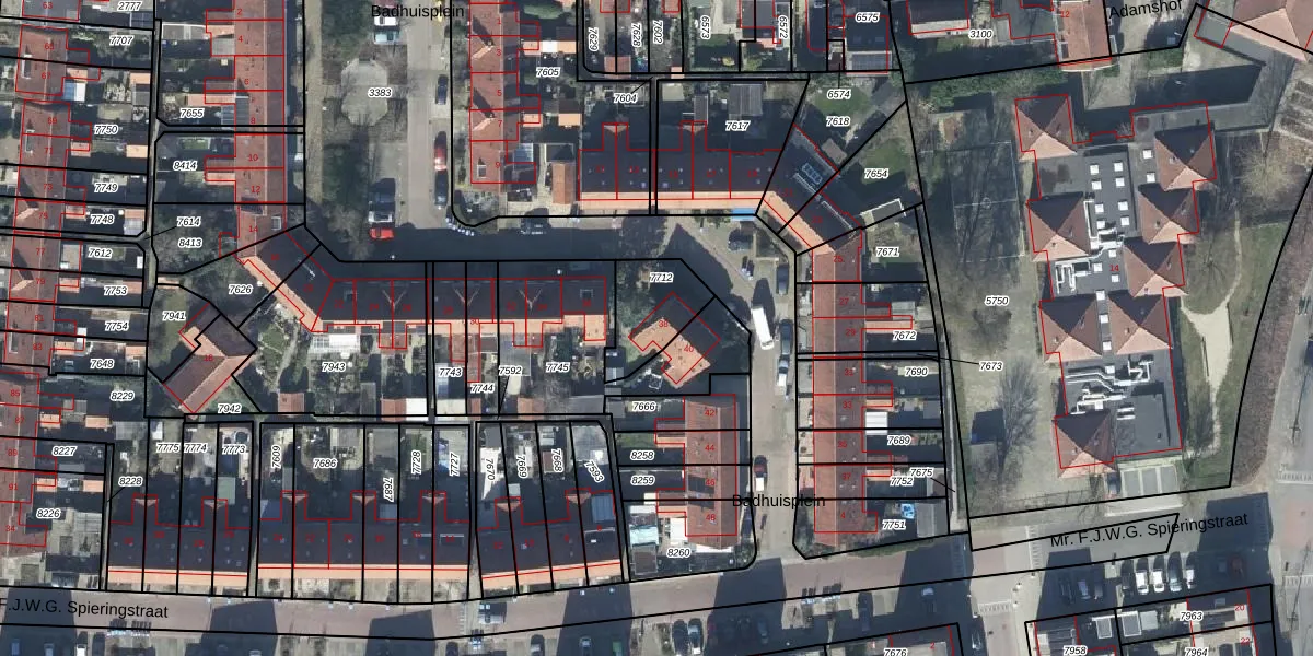 Badhuisplein 38 is gelegen op kadastraal perceel TIE00D7712. Deze kadastrale aanduiding is uniek en wordt gebruikt door het Kadaster om eigendomsrechten en andere zakelijke rechten vast te leggen. Het perceel maakt onderdeel uit van de kadastrale gemeente Tiel.