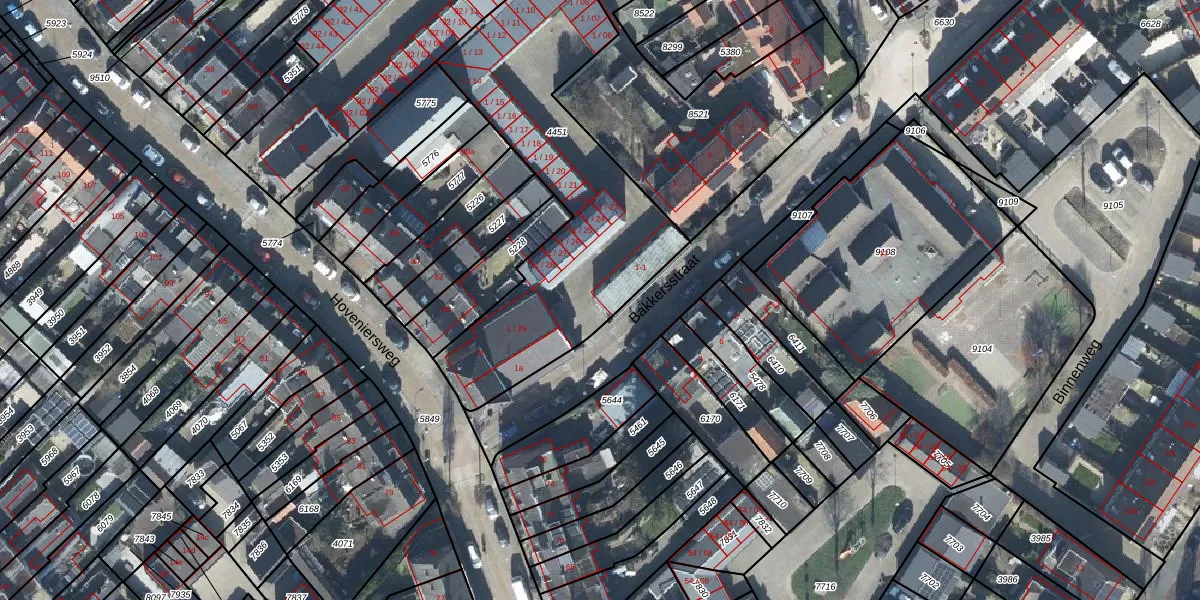 Het perceel waarop Bakkersstraat 1-01 staat heeft een oppervlakte van 1310 m². Dit is een zeer groot perceel. De perceeloppervlakte wordt geregistreerd door het Kadaster. Gedetailleerde informatie over de maten van dit perceel kunt u vinden in het rapport Kadastrale kaart met maatvoering van Bakkersstraat 1-01.