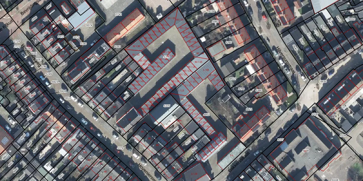 Het perceel waarop Bakkersstraat 1-13 staat heeft een oppervlakte van 1310 m². Dit is een zeer groot perceel. De perceeloppervlakte wordt geregistreerd door het Kadaster. Gedetailleerde informatie over de maten van dit perceel kunt u vinden in het rapport Kadastrale kaart met maatvoering van Bakkersstraat 1-13.