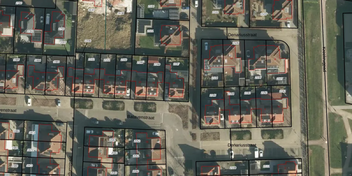 Batavenstraat 14 is gelegen op kadastraal perceel TIE00K2147. Deze kadastrale aanduiding is uniek en wordt gebruikt door het Kadaster om eigendomsrechten en andere zakelijke rechten vast te leggen. Het perceel maakt onderdeel uit van de kadastrale gemeente Tiel.