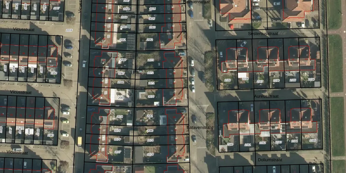 Het perceel waarop Batavenstraat 27 staat heeft een oppervlakte van 175 m². Dit is een middelgroot perceel. De perceeloppervlakte wordt geregistreerd door het Kadaster. Gedetailleerde informatie over de maten van dit perceel kunt u vinden in het rapport Kadastrale kaart met maatvoering van Batavenstraat 27.