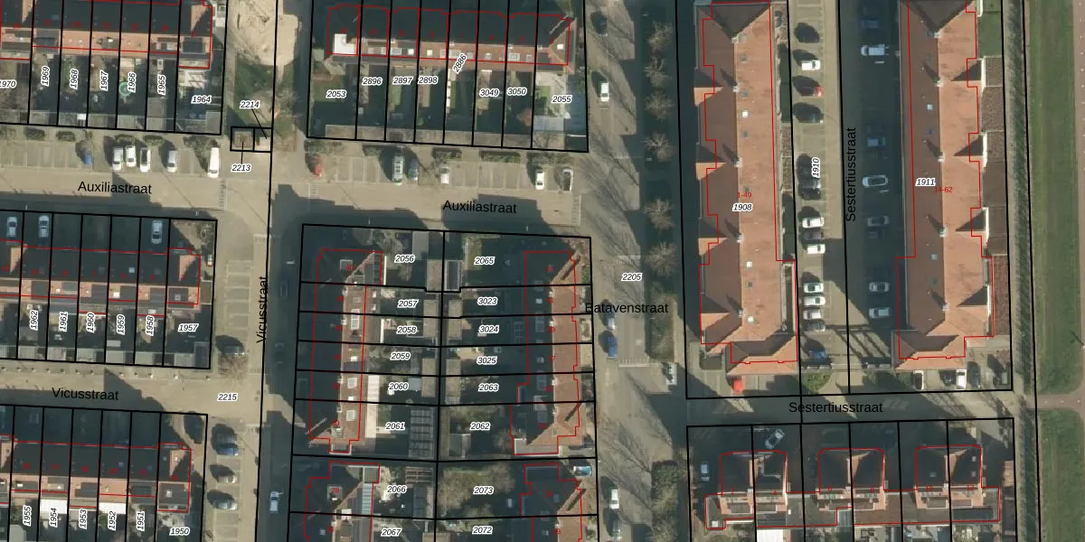 Het perceel waarop Batavenstraat 43 staat heeft een oppervlakte van 263 m². Dit is een middelgroot perceel. De perceeloppervlakte wordt geregistreerd door het Kadaster. Gedetailleerde informatie over de maten van dit perceel kunt u vinden in het rapport Kadastrale kaart met maatvoering van Batavenstraat 43.