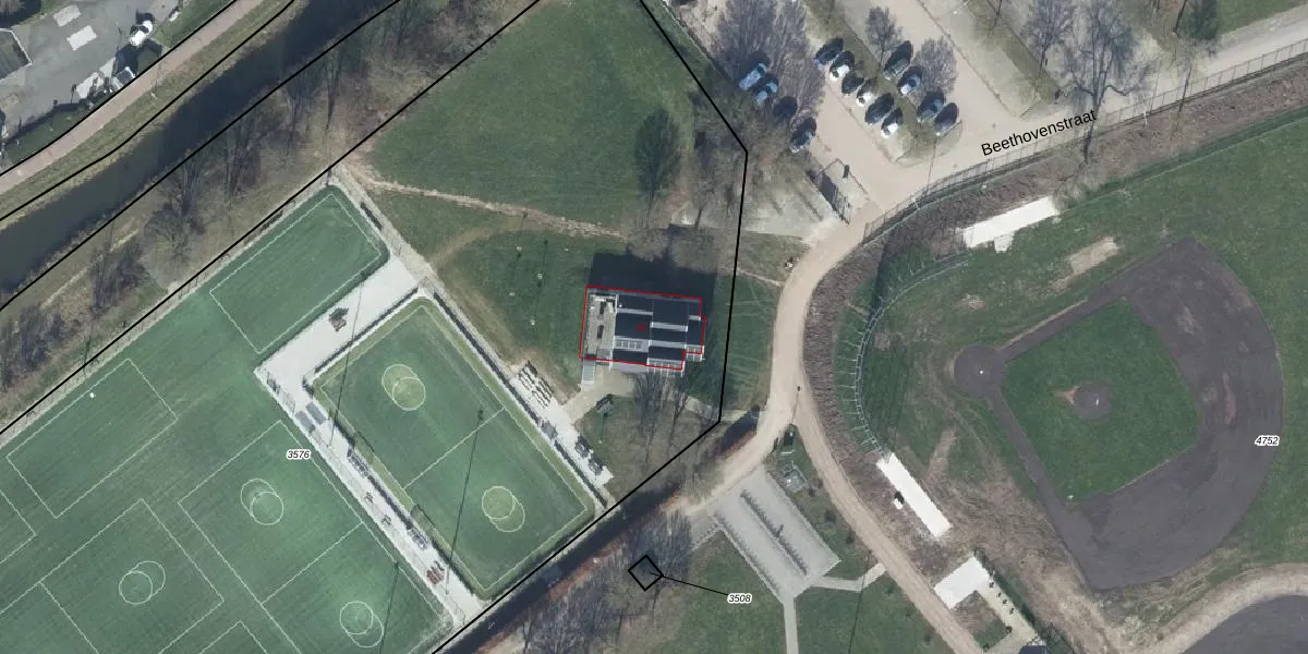 Het perceel waarop Beethovenstraat 18 staat heeft een oppervlakte van 9722 m². Dit is een zeer groot perceel. De perceeloppervlakte wordt geregistreerd door het Kadaster. Gedetailleerde informatie over de maten van dit perceel kunt u vinden in het rapport Kadastrale kaart met maatvoering van Beethovenstraat 18.
