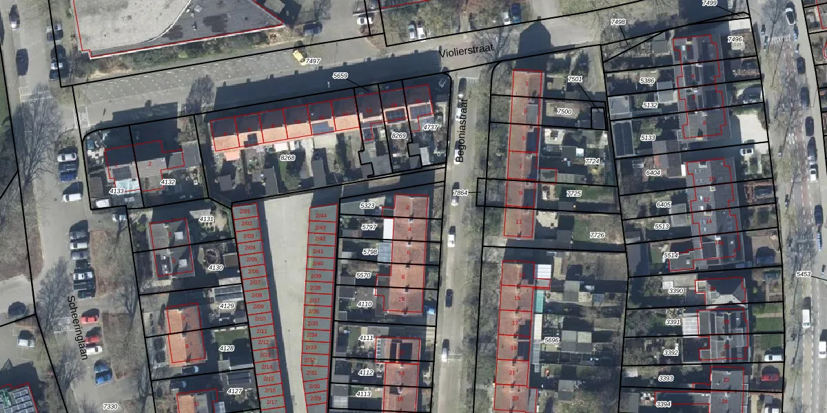 Het perceel waarop Begoniastraat 2 staat heeft een oppervlakte van 167 m². Dit is een middelgroot perceel. De perceeloppervlakte wordt geregistreerd door het Kadaster. Gedetailleerde informatie over de maten van dit perceel kunt u vinden in het rapport Kadastrale kaart met maatvoering van Begoniastraat 2.