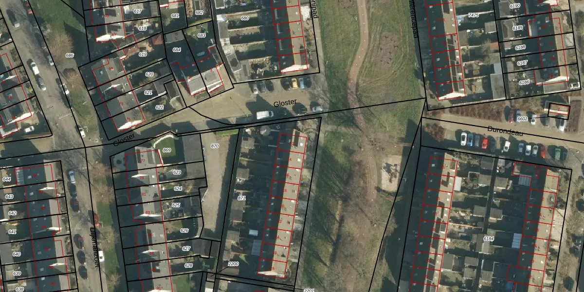 Het adres is gelegen op perceel 871 in de sectie K en de kadastrale gemeente Tiel. De kadastrale aanduiding is aldus TIE00-K-871. Het perceel is kleiner dan gemiddeld in Tiel. Het perceel is 1485 m² groot, terwijl het gemiddelde ligt op 1550,27 m². Het grootste perceel in de kadastrale gemeente is 26,3 ha. Het kleinste perceel heeft een oppervlakte van 0 m². Op het perceel zijn 9 adressen aanwezig. In de Basisregistratie Kadaster (BRK) werden de grenzen van het perceel geregistreerd op 07-05-2007.