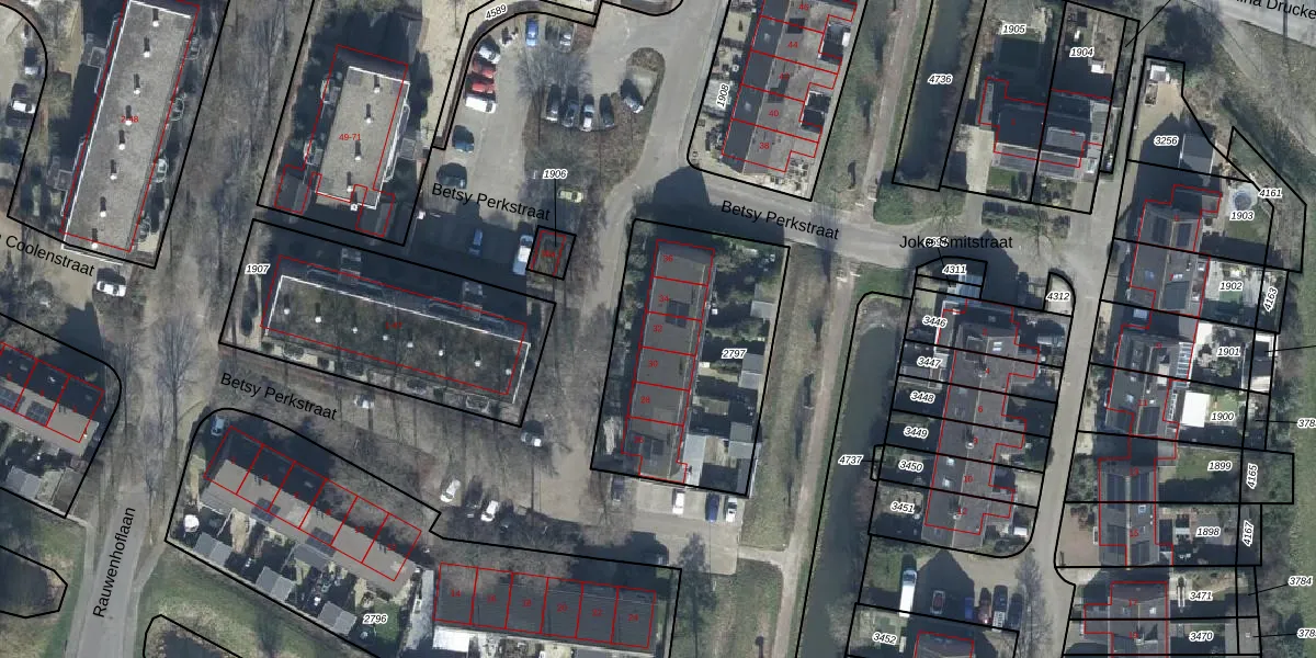 Het perceel waarop Betsy Perkstraat 32 staat heeft een oppervlakte van 915 m². Dit is een groot perceel. De perceeloppervlakte wordt geregistreerd door het Kadaster. Gedetailleerde informatie over de maten van dit perceel kunt u vinden in het rapport Kadastrale kaart met maatvoering van Betsy Perkstraat 32.