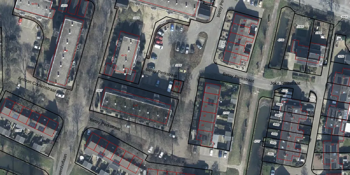 Het perceel waarop Betsy Perkstraat 36-a staat heeft een oppervlakte van 40 m². Dit is een klein perceel. De perceeloppervlakte wordt geregistreerd door het Kadaster. Gedetailleerde informatie over de maten van dit perceel kunt u vinden in het rapport Kadastrale kaart met maatvoering van Betsy Perkstraat 36-a.