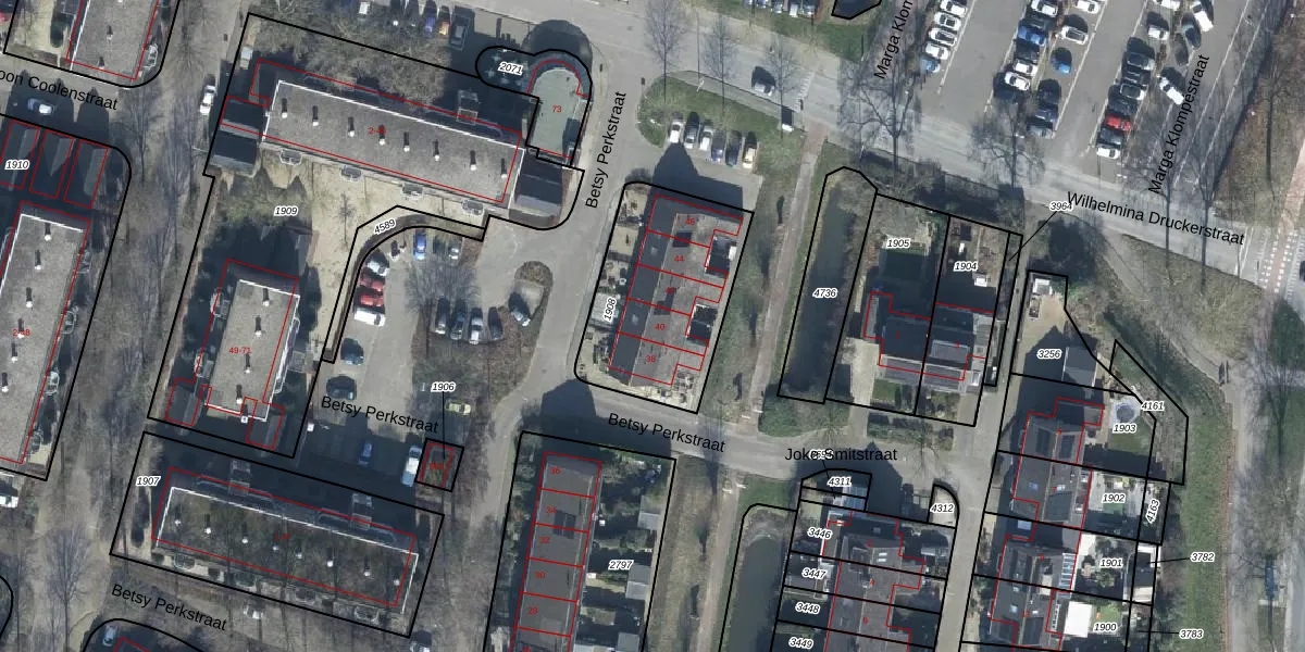 Het perceel waarop Betsy Perkstraat 40 staat heeft een oppervlakte van 632 m². Dit is een groot perceel. De perceeloppervlakte wordt geregistreerd door het Kadaster. Gedetailleerde informatie over de maten van dit perceel kunt u vinden in het rapport Kadastrale kaart met maatvoering van Betsy Perkstraat 40.