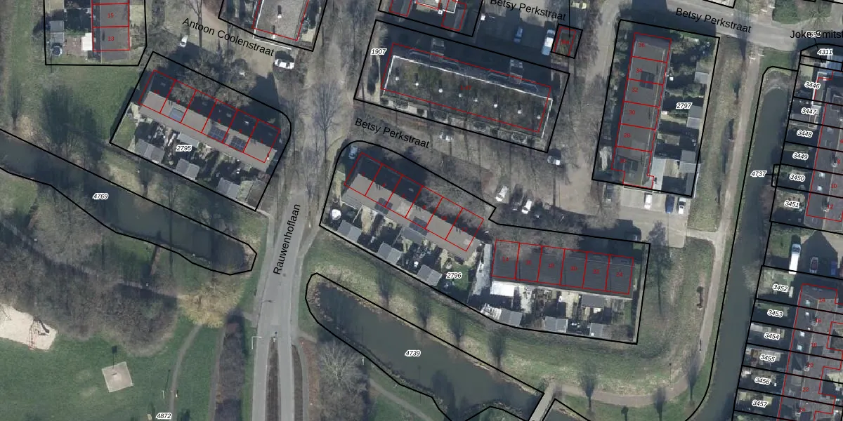 Het perceel waarop Betsy Perkstraat 8 staat heeft een oppervlakte van 1880 m². Dit is een zeer groot perceel. De perceeloppervlakte wordt geregistreerd door het Kadaster. Gedetailleerde informatie over de maten van dit perceel kunt u vinden in het rapport Kadastrale kaart met maatvoering van Betsy Perkstraat 8.