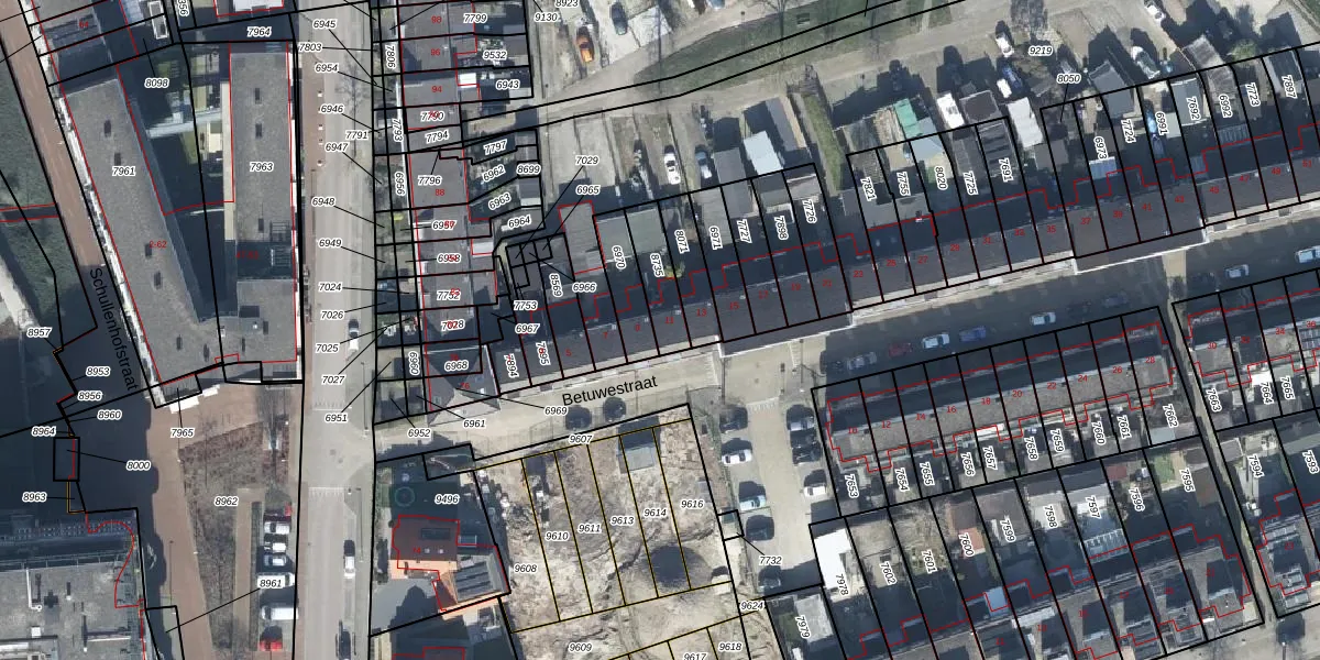 Betuwestraat 11 is gelegen op kadastraal perceel TIE00C8735. Deze kadastrale aanduiding is uniek en wordt gebruikt door het Kadaster om eigendomsrechten en andere zakelijke rechten vast te leggen. Het perceel maakt onderdeel uit van de kadastrale gemeente Tiel.