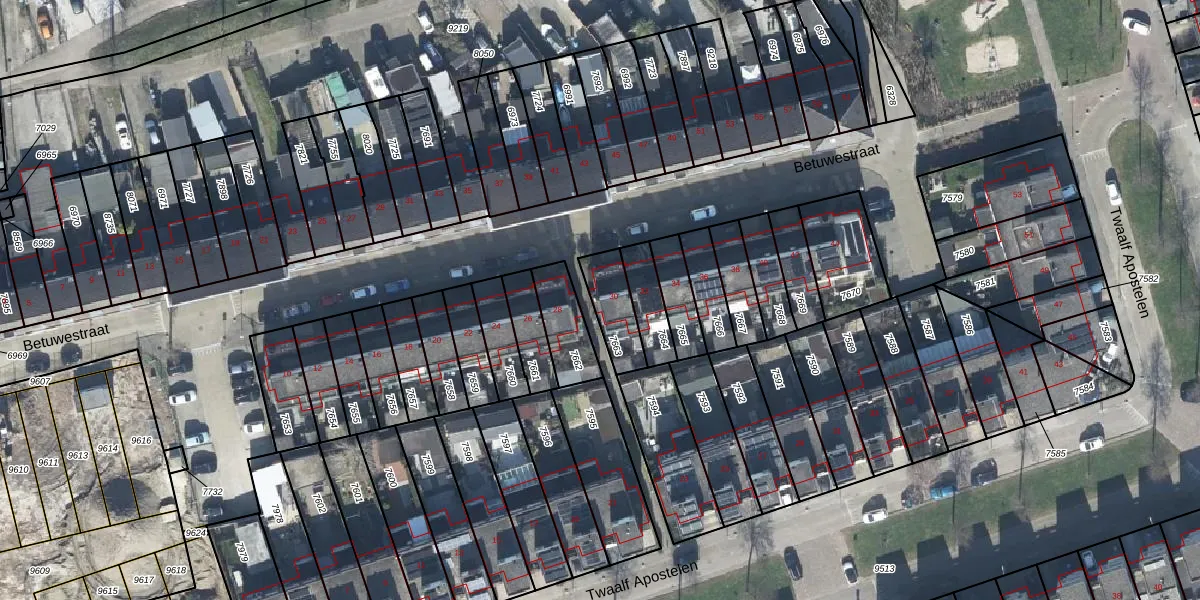 Het perceel waarop Betuwestraat 30 staat heeft een oppervlakte van 128 m². Dit is een middelgroot perceel. De perceeloppervlakte wordt geregistreerd door het Kadaster. Gedetailleerde informatie over de maten van dit perceel kunt u vinden in het rapport Kadastrale kaart met maatvoering van Betuwestraat 30.