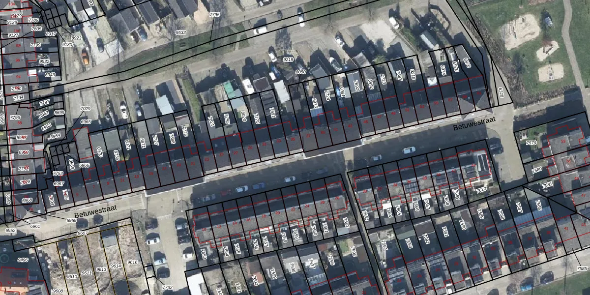 Het perceel waarop Betuwestraat 35 staat heeft een oppervlakte van 2943 m². Dit is een zeer groot perceel. De perceeloppervlakte wordt geregistreerd door het Kadaster. Gedetailleerde informatie over de maten van dit perceel kunt u vinden in het rapport Kadastrale kaart met maatvoering van Betuwestraat 35.