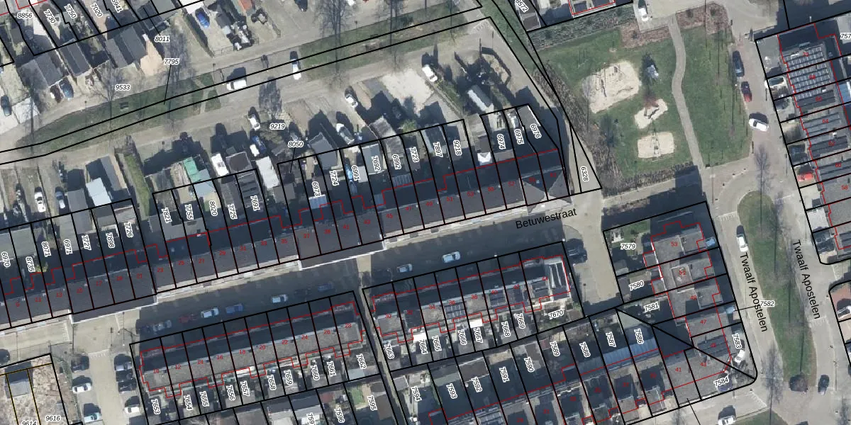 Betuwestraat 49 is gelegen op kadastraal perceel TIE00C7723. Deze kadastrale aanduiding is uniek en wordt gebruikt door het Kadaster om eigendomsrechten en andere zakelijke rechten vast te leggen. Het perceel maakt onderdeel uit van de kadastrale gemeente Tiel.