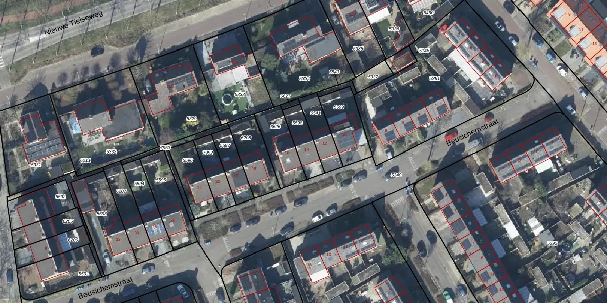 Beusichemstraat 14 is gelegen op kadastraal perceel TIE00D5598. Deze kadastrale aanduiding is uniek en wordt gebruikt door het Kadaster om eigendomsrechten en andere zakelijke rechten vast te leggen. Het perceel maakt onderdeel uit van de kadastrale gemeente Tiel.