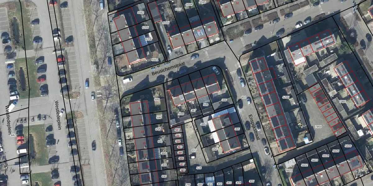 Beusichemstraat 21 is gelegen op kadastraal perceel TIE00M367. Deze kadastrale aanduiding is uniek en wordt gebruikt door het Kadaster om eigendomsrechten en andere zakelijke rechten vast te leggen. Het perceel maakt onderdeel uit van de kadastrale gemeente Tiel.