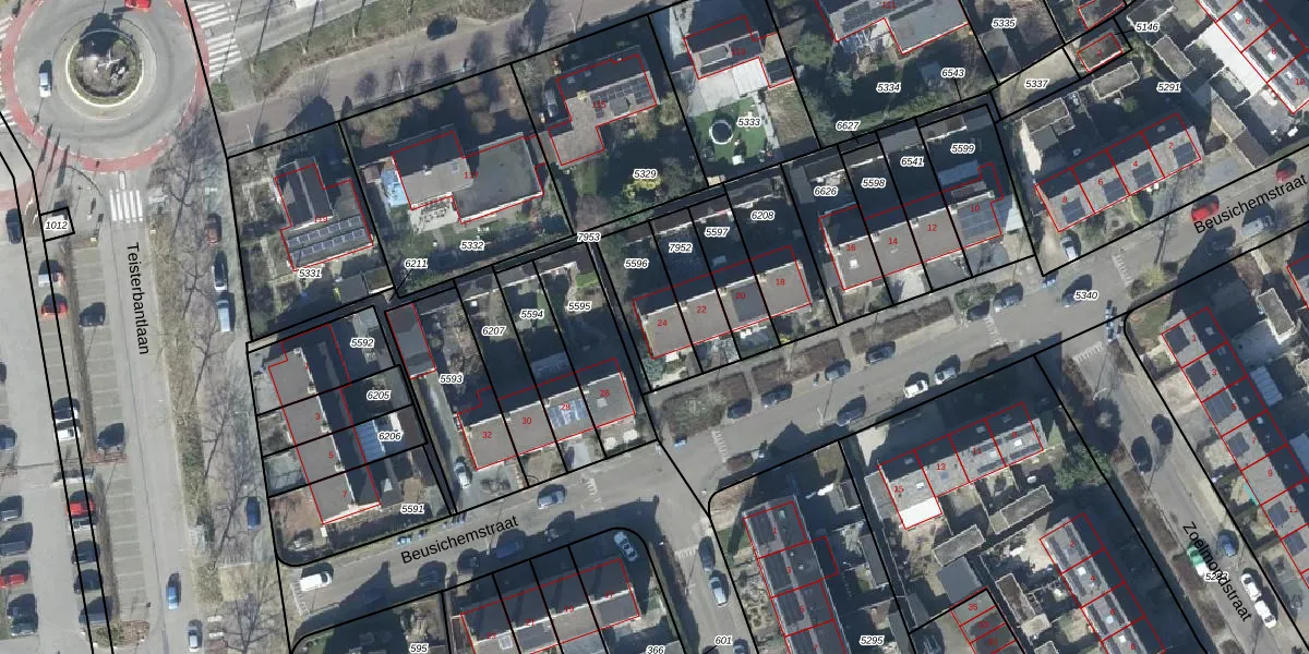 Beusichemstraat 24 is gelegen op kadastraal perceel TIE00D5596. Deze kadastrale aanduiding is uniek en wordt gebruikt door het Kadaster om eigendomsrechten en andere zakelijke rechten vast te leggen. Het perceel maakt onderdeel uit van de kadastrale gemeente Tiel.