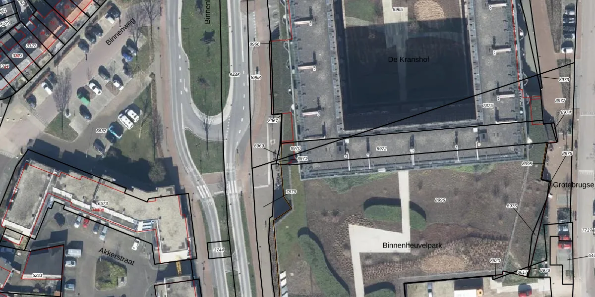 Binnenhoek 40 is gelegen op kadastraal perceel TIE00C8970. Deze kadastrale aanduiding is uniek en wordt gebruikt door het Kadaster om eigendomsrechten en andere zakelijke rechten vast te leggen. Het perceel maakt onderdeel uit van de kadastrale gemeente Tiel.