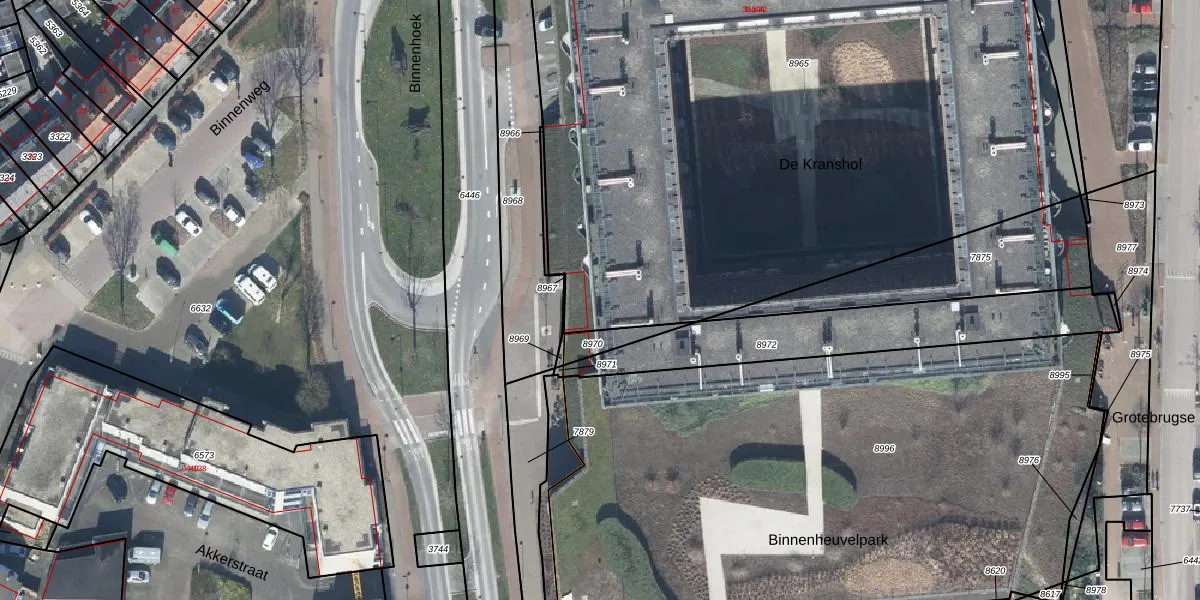 Het perceel waarop Binnenhoek 42 staat heeft een oppervlakte van 5840 m². Dit is een zeer groot perceel. De perceeloppervlakte wordt geregistreerd door het Kadaster. Gedetailleerde informatie over de maten van dit perceel kunt u vinden in het rapport Kadastrale kaart met maatvoering van Binnenhoek 42.