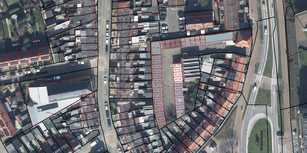 Binnenhoek 97-15 is gelegen op kadastraal perceel TIE00C6812. Deze kadastrale aanduiding is uniek en wordt gebruikt door het Kadaster om eigendomsrechten en andere zakelijke rechten vast te leggen. Het perceel maakt onderdeel uit van de kadastrale gemeente Tiel.