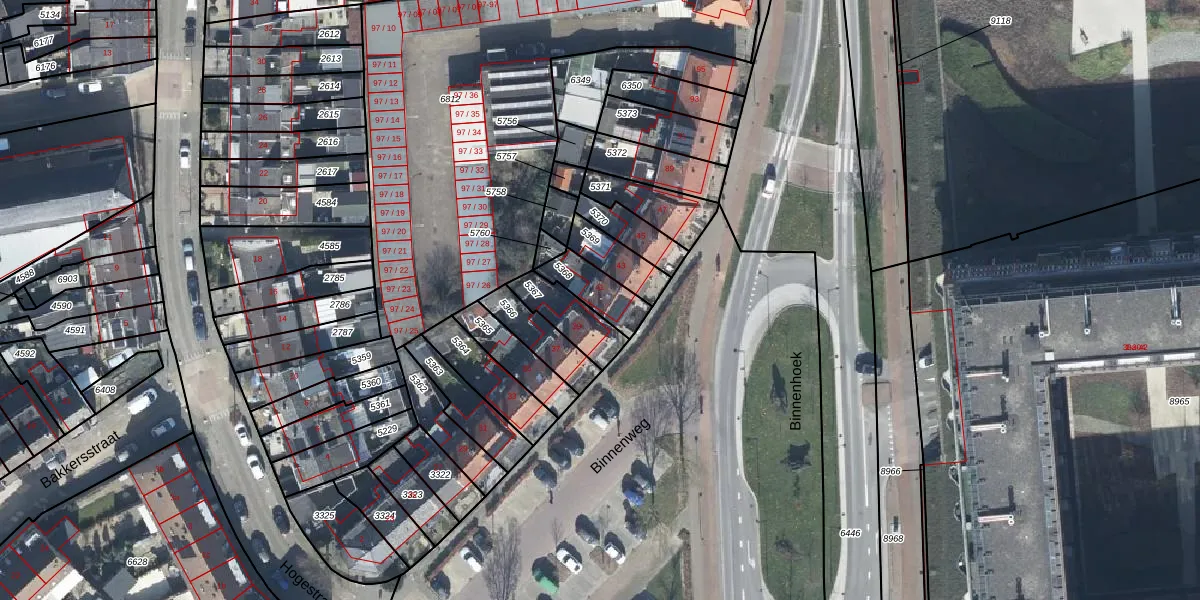 Gebruik de zoekbalk of klik op een perceel voor informatie over de adressen binnen dit perceel.