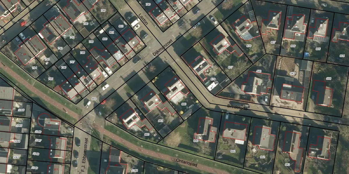 Het perceel waarop Brederode 2 staat heeft een oppervlakte van 412 m². Dit is een groot perceel. De perceeloppervlakte wordt geregistreerd door het Kadaster. Gedetailleerde informatie over de maten van dit perceel kunt u vinden in het rapport Kadastrale kaart met maatvoering van Brederode 2.