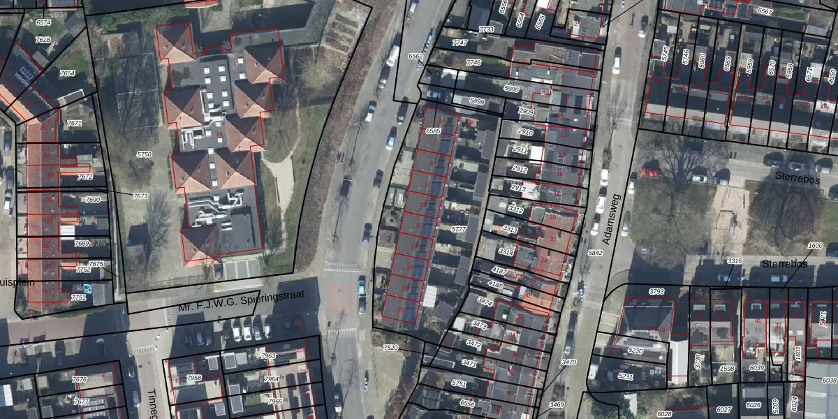 Het adres is gelegen op perceel 5777 in de sectie D en de kadastrale gemeente Tiel. De kadastrale aanduiding is aldus TIE00-D-5777. De gemiddelde perceelgrootte in Tiel is 1546,95 m². Dit perceel is kleiner: de perceeloppervlakte bedraagt 1290 m². De grootste perceeloppervlakte in de kadastrale gemeente is 26,3 ha. De kleinste oppervlakte bedraagt 0 m². Op het perceel zijn 10 adressen aanwezig. In de Basisregistratie Kadaster (BRK) werden de grenzen van het perceel geregistreerd op 09-03-2009.