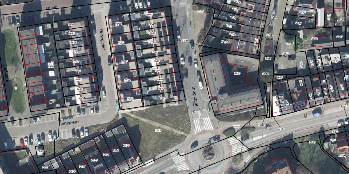 Brugstraat 36 is gelegen op kadastraal perceel TIE00D7971. Deze kadastrale aanduiding is uniek en wordt gebruikt door het Kadaster om eigendomsrechten en andere zakelijke rechten vast te leggen. Het perceel maakt onderdeel uit van de kadastrale gemeente Tiel.