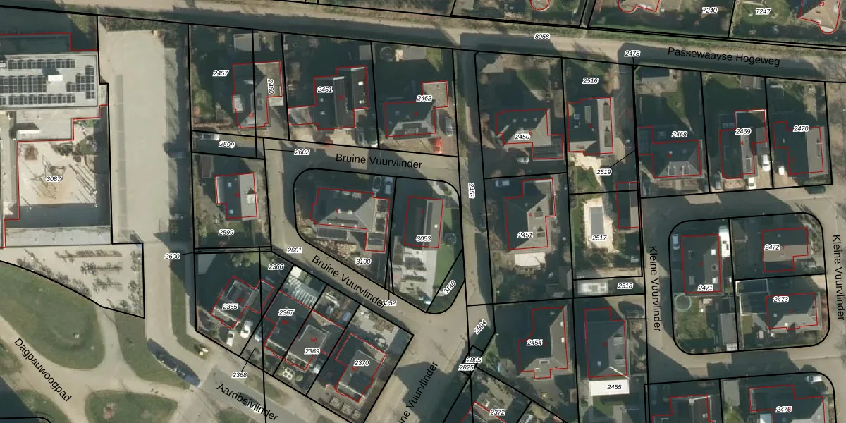 Het perceel waarop Bruine Vuurvlinder 1 staat heeft een oppervlakte van 428 m². Dit is een groot perceel. De perceeloppervlakte wordt geregistreerd door het Kadaster. Gedetailleerde informatie over de maten van dit perceel kunt u vinden in het rapport Kadastrale kaart met maatvoering van Bruine Vuurvlinder 1.