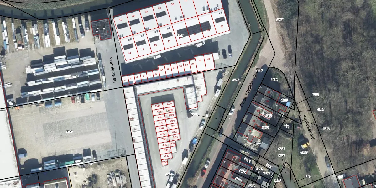 Het adres ligt op het perceel TIE00-C-9281, dat zich in de kadastrale gemeente Tiel bevindt. De oppervlakte van het perceel is 2537 m². Dat is groter dan gemiddeld in Tiel, waar de gemiddelde perceeloppervlakte op 1550,27 m² ligt. Het kleinste perceel in de kadastrale gemeente is 0 m² groot. De grootste perceeloppervlakte is 26,3 ha. Op het perceel liggen in totaal 88 adressen. De huidige grenzen van het perceel zijn digitaal in de Basisregistratie Kadaster (BRK) geregistreerd op 29-01-2024.