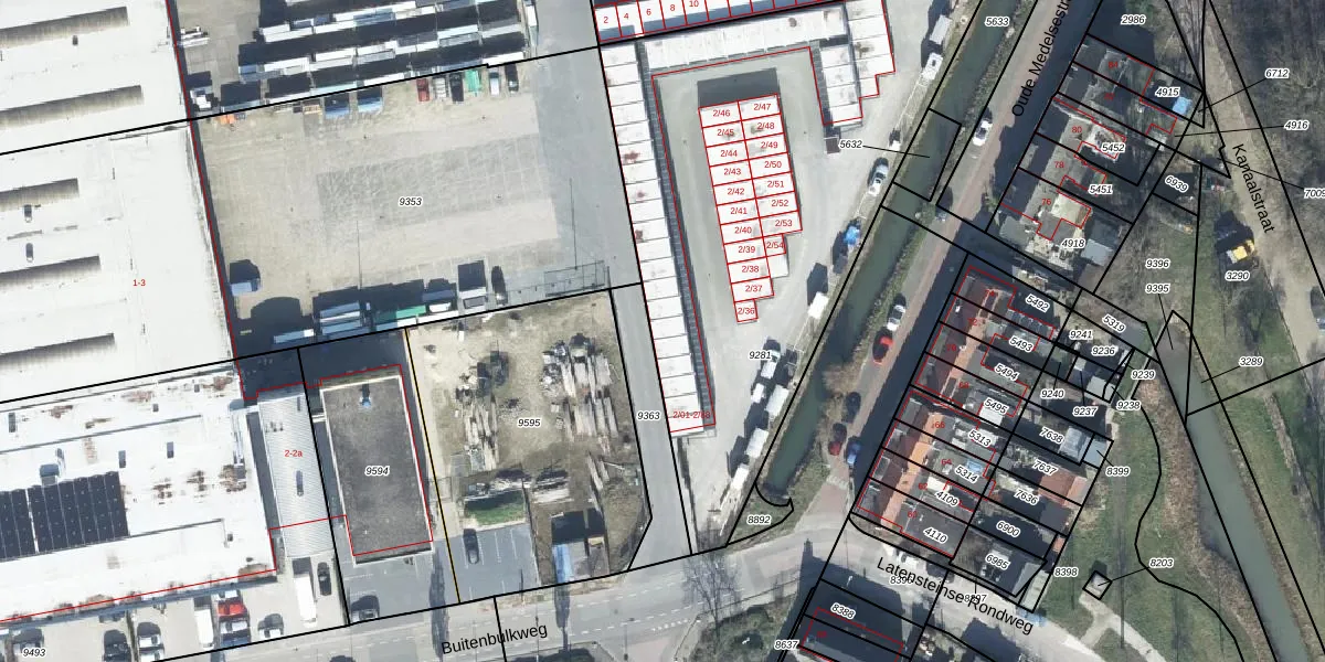 Buitenbulkweg 2-59 is gelegen op kadastraal perceel TIE00C9281. Deze kadastrale aanduiding is uniek en wordt gebruikt door het Kadaster om eigendomsrechten en andere zakelijke rechten vast te leggen. Het perceel maakt onderdeel uit van de kadastrale gemeente Tiel.