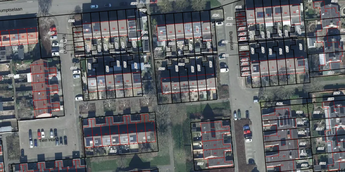 Buitenlust 10 is gelegen op kadastraal perceel TIE00G1593. Deze kadastrale aanduiding is uniek en wordt gebruikt door het Kadaster om eigendomsrechten en andere zakelijke rechten vast te leggen. Het perceel maakt onderdeel uit van de kadastrale gemeente Tiel.