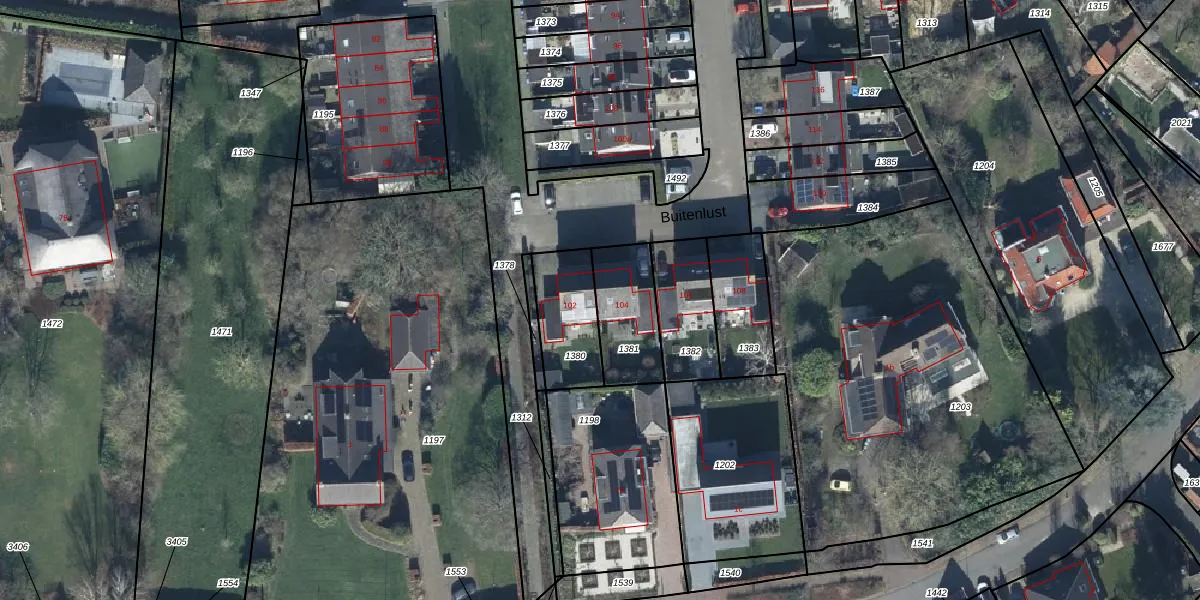 Het perceel waarop Buitenlust 104 staat heeft een oppervlakte van 230 m². Dit is een middelgroot perceel. De perceeloppervlakte wordt geregistreerd door het Kadaster. Gedetailleerde informatie over de maten van dit perceel kunt u vinden in het rapport Kadastrale kaart met maatvoering van Buitenlust 104.