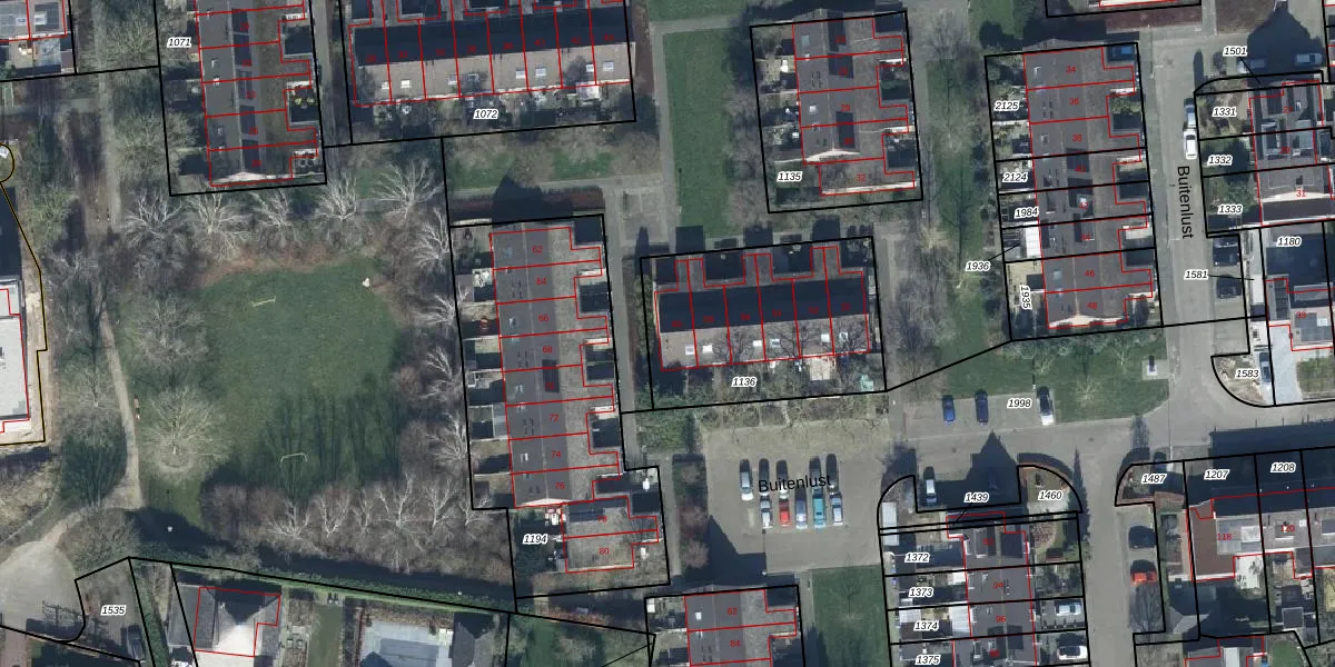 Het perceel waarop Buitenlust 60 staat heeft een oppervlakte van 806 m². Dit is een groot perceel. De perceeloppervlakte wordt geregistreerd door het Kadaster. Gedetailleerde informatie over de maten van dit perceel kunt u vinden in het rapport Kadastrale kaart met maatvoering van Buitenlust 60.