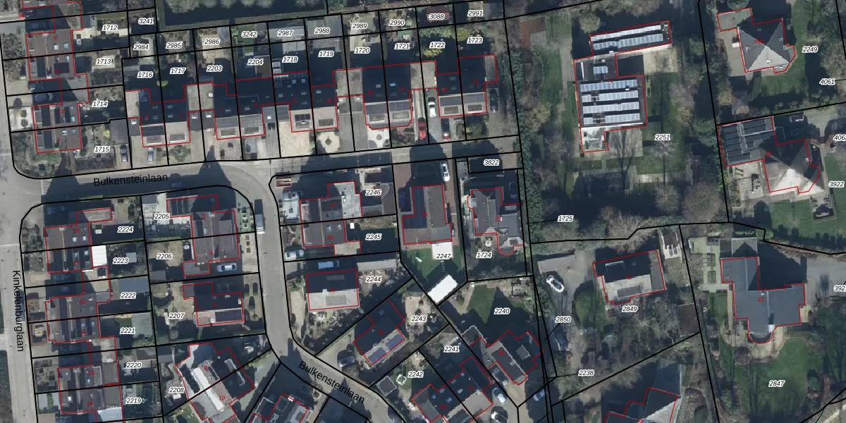Het perceel waarop Bulkensteinlaan 25 staat heeft een oppervlakte van 455 m². Dit is een groot perceel. De perceeloppervlakte wordt geregistreerd door het Kadaster. Gedetailleerde informatie over de maten van dit perceel kunt u vinden in het rapport Kadastrale kaart met maatvoering van Bulkensteinlaan 25.