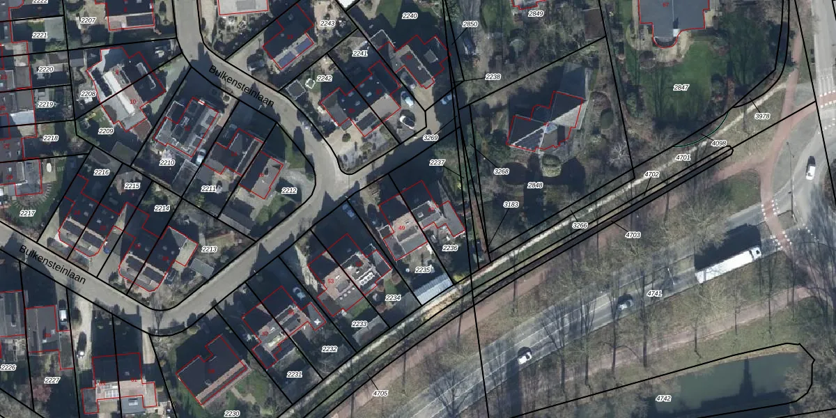 Bulkensteinlaan 47 is gelegen op kadastraal perceel TIE00H2236. Deze kadastrale aanduiding is uniek en wordt gebruikt door het Kadaster om eigendomsrechten en andere zakelijke rechten vast te leggen. Het perceel maakt onderdeel uit van de kadastrale gemeente Tiel.