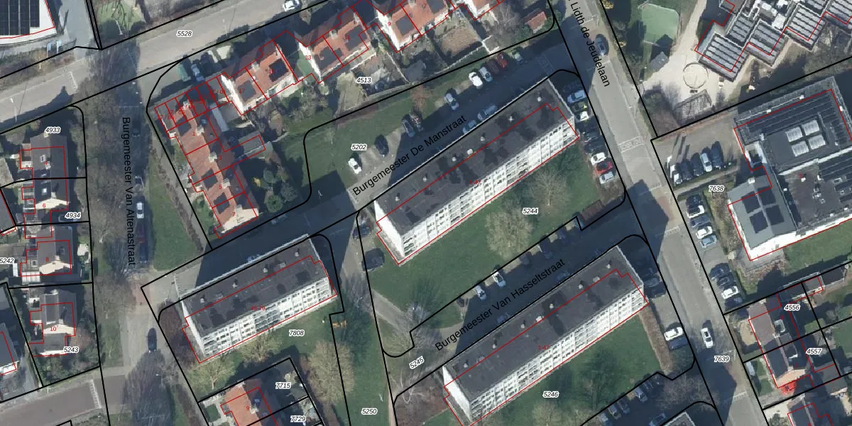 Het perceel waarop Burgemeester De Manstraat 37 staat heeft een oppervlakte van 2053 m². Dit is een zeer groot perceel. De perceeloppervlakte wordt geregistreerd door het Kadaster. Gedetailleerde informatie over de maten van dit perceel kunt u vinden in het rapport Kadastrale kaart met maatvoering van Burgemeester De Manstraat 37.