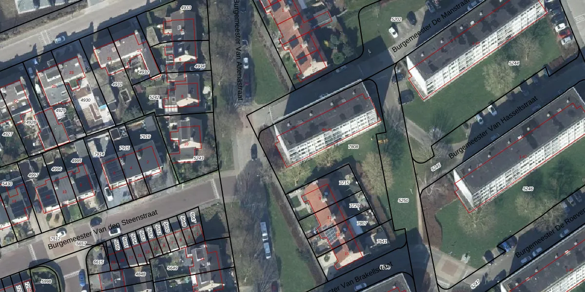 Burgemeester De Manstraat 71 is gelegen op kadastraal perceel TIE00D7808. Deze kadastrale aanduiding is uniek en wordt gebruikt door het Kadaster om eigendomsrechten en andere zakelijke rechten vast te leggen. Het perceel maakt onderdeel uit van de kadastrale gemeente Tiel.