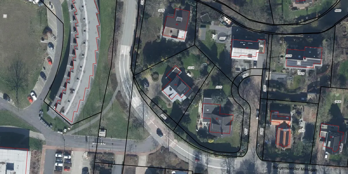 Het perceel waarop Burgemeester Meslaan 44 staat heeft een oppervlakte van 1080 m². Dit is een zeer groot perceel. De perceeloppervlakte wordt geregistreerd door het Kadaster. Gedetailleerde informatie over de maten van dit perceel kunt u vinden in het rapport Kadastrale kaart met maatvoering van Burgemeester Meslaan 44.