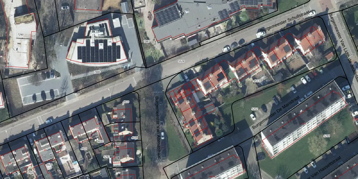 Het perceel waarop Burgemeester Schullstraat 17-04 staat heeft een oppervlakte van 2985 m². Dit is een zeer groot perceel. De perceeloppervlakte wordt geregistreerd door het Kadaster. Gedetailleerde informatie over de maten van dit perceel kunt u vinden in het rapport Kadastrale kaart met maatvoering van Burgemeester Schullstraat 17-04.