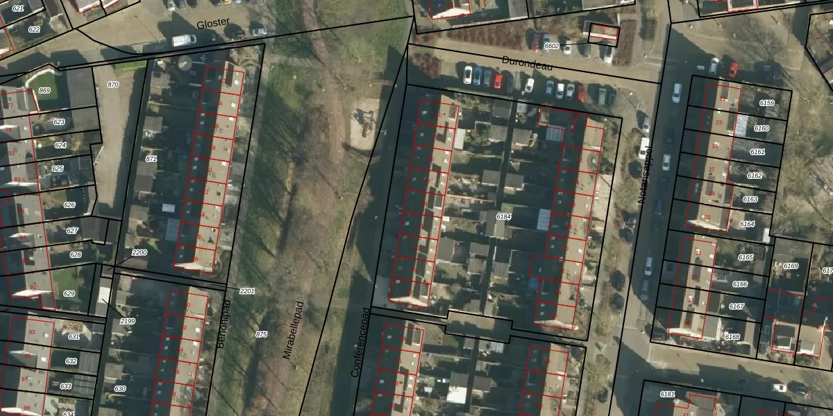 Het perceel waarop Conférencepad 29 staat heeft een oppervlakte van 2870 m². Dit is een zeer groot perceel. De perceeloppervlakte wordt geregistreerd door het Kadaster. Gedetailleerde informatie over de maten van dit perceel kunt u vinden in het rapport Kadastrale kaart met maatvoering van Conférencepad 29.