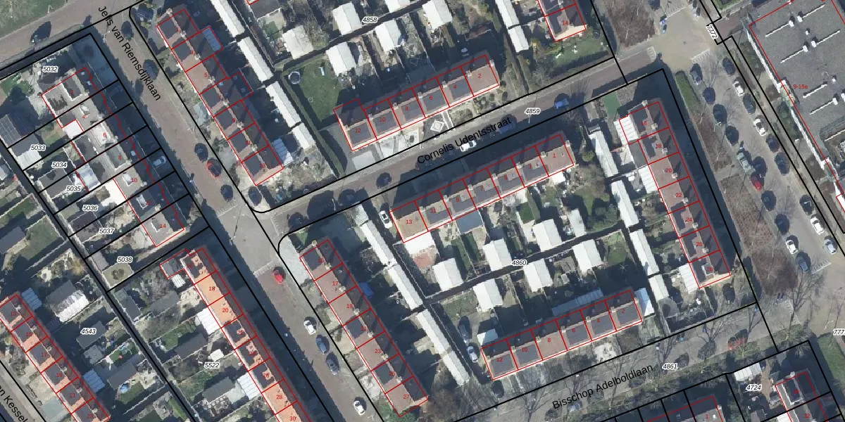Cornelis Udentsstraat 11 is gelegen op kadastraal perceel TIE00D4860. Deze kadastrale aanduiding is uniek en wordt gebruikt door het Kadaster om eigendomsrechten en andere zakelijke rechten vast te leggen. Het perceel maakt onderdeel uit van de kadastrale gemeente Tiel.